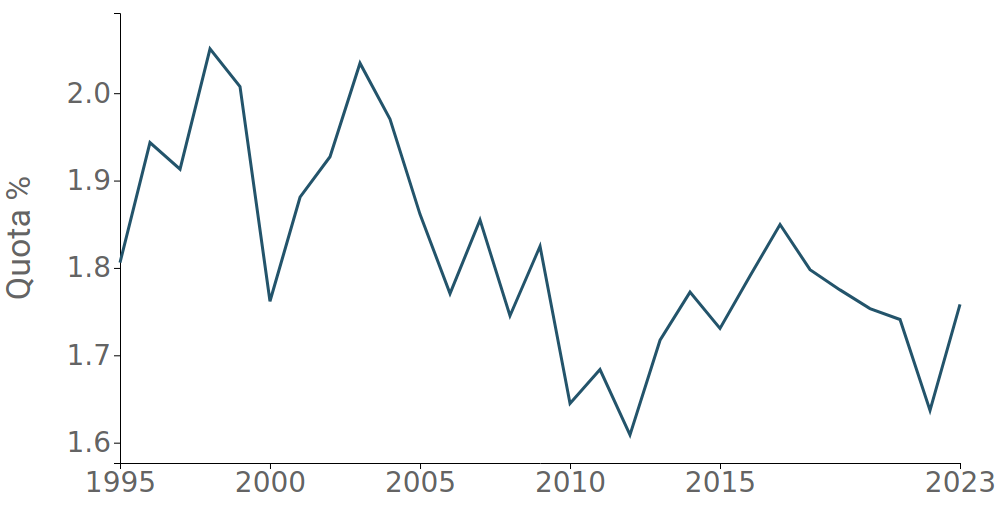From a long-term perspective, the process of weakening of the share of world trade recorded over the century is evident, which only in the Italian case seems to have reached its stabilization. Particularly significant is the downsizing triggered at the dawn of the pandemic year in the cases of France and Germany, which seem to have found only in 2023 a weak reversal, which in any case has not allowed them to recover what they left on the ground during the previous years. More variable is Spain's share of world trade, which nevertheless in the medium-period appears to be in relative decline. Substantially, when compared to the pre-covid figure, only Italy defends its 3% share.