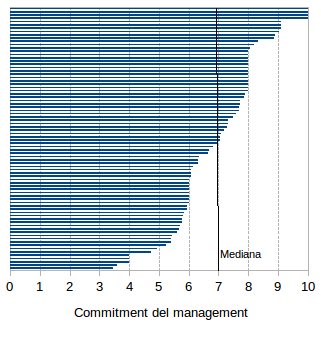 9) Le aree motivazioni per l'internazionalizzazione e commitment del management, pur presentando valutazioni mediamente favorevoli, segnalano una dispersione dei risultati abbastanza elevata, confermando - quindi - questi elementi come potenziali fattori di criticità in termini di risorse a disposizione del progetto.