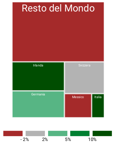 Irlanda (+20.3%), Svizzera (+16.5%) e Belgio (+17.5%).